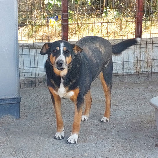 Hüpfi haben wir im Mai 2025 von unserer Tierschutzfreundin Constanta Mironescu übernommen, weil deren Shelter in Negru Voda völlig überfüllt ist, und manche Hunde dort kaum Bewegungsfreiheit haben